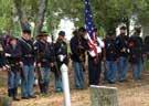 African Americans served both Union and Confederate Armies during the Civil War. The 106th United States Colored Infantry (USCI), organized in Decatur, is the first of only two black units raised in the State. Later the bravery of the 14th USCI was exhibited in Decatur, on October 28, 1864 when they saw combat with General John Bell Hood, resulting in a Union victory. The regiment first saw action on August 14-15, 1864, when it engaged in heavy skirmishing with raiding parties from General Joseph Wheeler’s cavalry at Dalton, Georgia. On August, 2009, a military grave marker was dedicated for 1st Alabama Cavalry, Union Civil War Soldier, Amos McKinney, who is buried at Magnolia-Sykes Cemetery in Decatur. Members of the 13th US Colored Troop and the 1st Alabama Cavalry reenactors (pictured at grave) took part in the ceremony. McKinney, who died Aug. 24, 1910 in Moulton, had been in an unmarked grave since his death. James J. Sykes purchased land for the Magnolia-Sykes Cemetery in 1901.