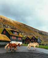 Das kleine Koltur, westlich der Hauptstadt Tórshavn, mit seinem Sandstrand und dem hoch aufragenden Inselberg ist der richtige Ort, um sich in einer historischen Kulturlandschaft, wozu auch aus Feldsteinen erbaute, sorgfältig restaurierte Hofgebäude gehören, ein Bild vom früheren Leben auf den Färöern zu machen, siehe Seite 61.