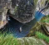 Auch für Nichtornithologen ist eine Bootsfahrt zu diesen gewaltigen Vogelkliffen im Westen von Streymoy ein Erlebnis, denn man fährt in tiefe Meeresgrotten ein und durch schmale Sunde dicht unter der senkrechten, fast 700 m hohen Felswand entlang, wo Tausende von Vögeln nisten, darunter Papageientaucher, Trottellummen und Eissturmvögel, siehe Seite 65.