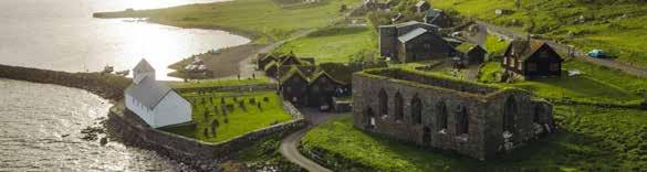 Kirkjuböur im Süden von Streymoy ist der wohl bedeutendste geschichtliche Ort auf den Färöern. Die eindrucksvolle Ruine des St.-Magnus-Doms stammt aus dem 14. Jahrhundert, und auch die Ortskirche und das benachbarte Blockhaus Roykstovan sind hochmittelalterlich. Roykstovan ist eines der ältesten noch bewohnten Holzhäuser Europas, siehe Seite 58.