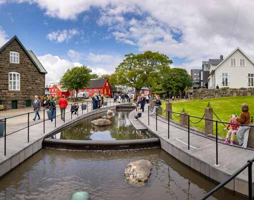 Die Altstadt von Tórshavn muss man gesehen haben: die engen Gassen auf der Landzunge Tinganes, die geteerten Holzhäuschen mit üppigen Grasdächern, die historischen Lagerhäuser, das Verwaltungsgebäude des ehemaligen Monopolhandels vorne am Wasser, heute Sitz des Ministerpräsidenten, die frühmittelalterlichen Ritzungen auf den flachen Felsen davor, siehe Seite 46.