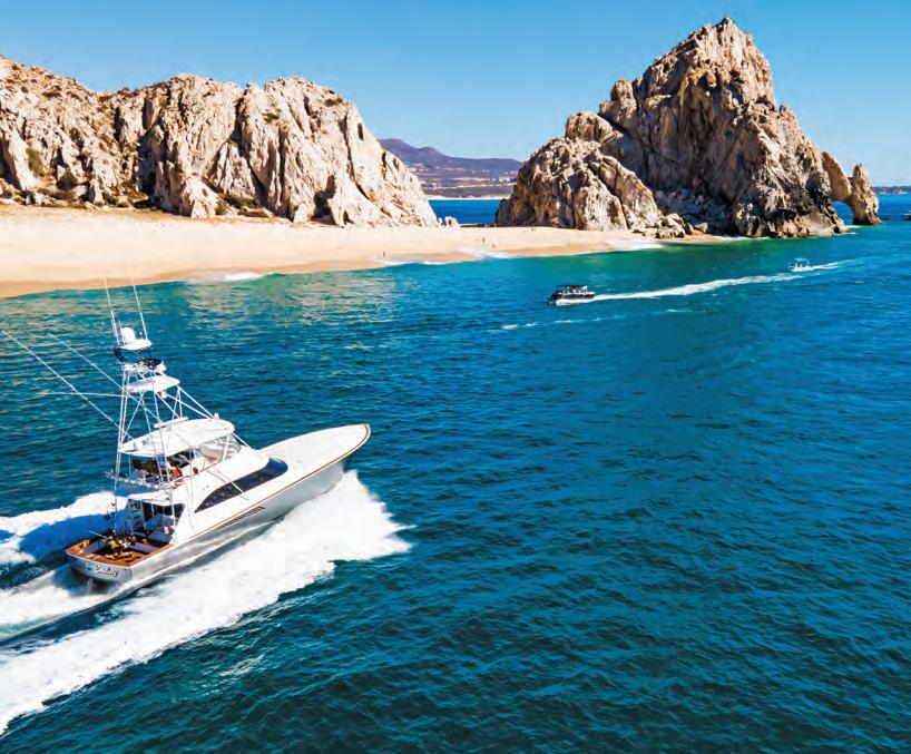 their own to take advantage of the gusty Los Barilles winds that whip up during winter. Soft adventure opportunities abound at bustling Médano Beach, where stand-up paddle boards and WaveRunners can be rented to explore the Los Cabos Marina bay waters. Or take a quick skip across the harbor to moor up and go for a romantic walk along the golden sands at famous El Arco beaches — Lover’s Beach on the bay side and equally pretty, yet amusingly named, Divorce Beach on the Pacific side. For team building or to get in some family fun, charter a sportfishing boat through the Pisces Fleet to battle highflying mahimahi, striped marlin, grouper, and snapper right out of San Lucas.