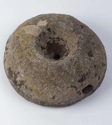 Rotary quern made of Mourne granite for grinding grain into flour, from Ballyculter, 5th century AD. (Photo: Bryan Rutledge). Obrotowe żarna z Ballyculter do mielenia ziaren na mąkę wykonane z granitu z Mourne, V wiek (Zdjęcie: Bryan Rutledge).