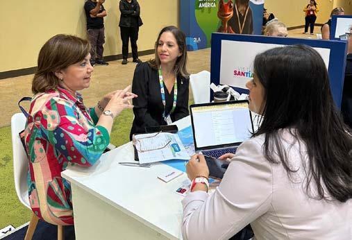 Se impulsaron materiales promocionales, presentaciones estratégicas y proyectos editoriales como esta revista, Visitando Santiago, además de acciones continuas de comunicación y relaciones públicas. Asimismo, las ruedas de negocios en cada feria generaron contactos de alto valor y ampliaron la visibilidad de la ciudad en mercados clave.