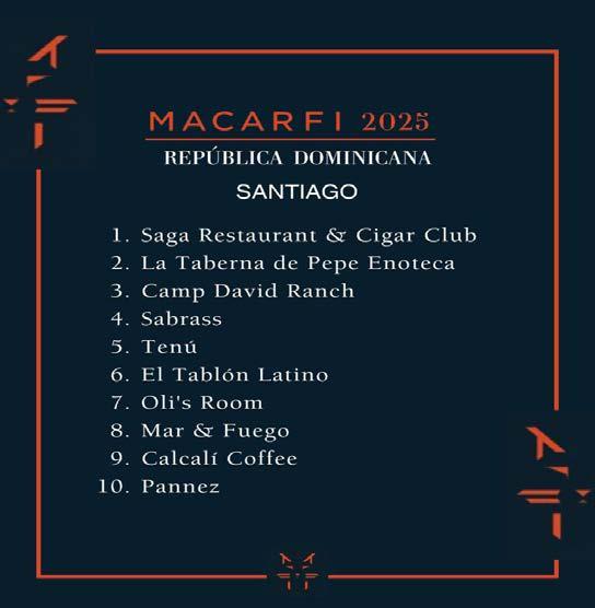 La reconocida Guía Macarfi seleccionó en 2025 su Top 10 Santiago, a quienes reconoció durante una gala en Santo Domingo para celebrar lo mejor de la gastronomía dominicana, especialmente de restaurantes en Santo Domingo, Santiago y La Altagracia.