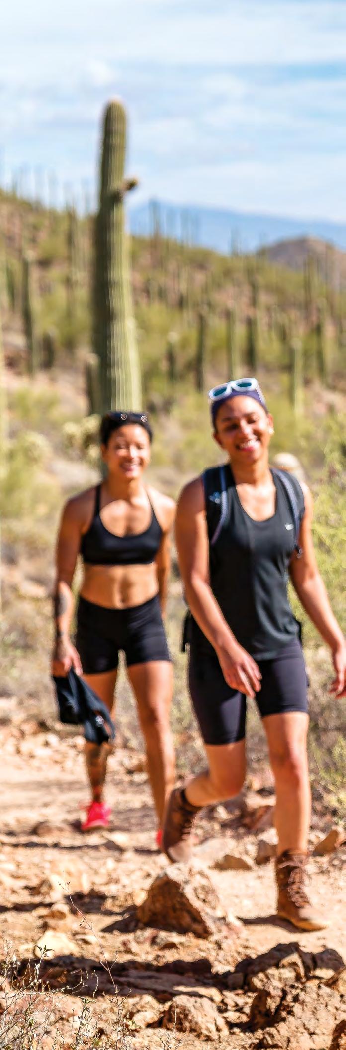 erceau des saguaros emblématiques et des majestueuses Sky Islands” (îles célestes), Tucson est une invitation permanente à l’exploration. Face à l’infinité des sentiers et des panoramas qui s’étendent à perte de vue, votre seul véritable défi sera de choisir votre prochaine destination. De gauche à droite : VTT à The Chutes ; Escalade dans la forêt nationale de Coronado