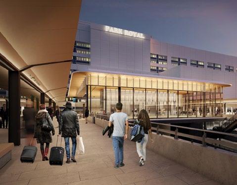 A new 19 metre wide pedestrian bridge will provide direct passenger access from the T123 Transport Hub to the terminals.