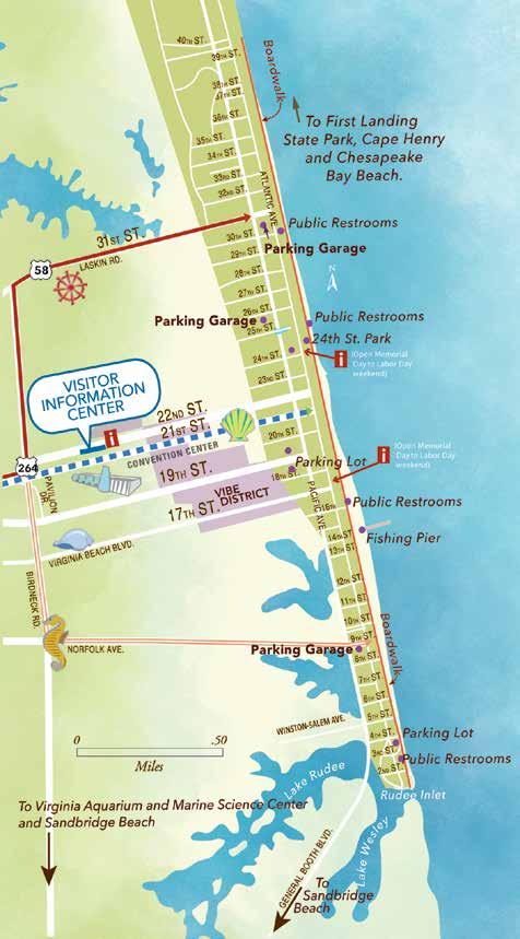 Il existe plus d’un chemin pour rejoindre Atlantic Avenue et le front de mer. Pour éviter les embouteillages, nous suggérons d’emprunter la Birdneck Road, 22E, à la sortie de l’Interstate 264. Des panneaux de signalisation pratiques sont fixés en bas de la rampe de sortie et vous dirigeront vers votre destination finale sur Atlantic Avenue.