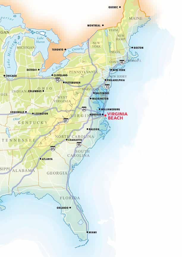 Située à mi-chemin sur la côte atlantique Est, Virginia Beach est à une bonne journée de route de la plupart des grandes villes du nordest des Etats-Unis. Trouver votre chemin vers Virginia Beach est un jeu d’enfant, consultez la carte avec les directions à suivre et vous serez avec nous en un rien de temps. Pour une arrivée spectaculaire depuis le nord, vous emprunterez le Pont Tunnel de la Baie de Chesapeake. Veuillez noter que le Pont Tunnel de la Baie de Chesapeake et le Pont Tunnel de Elizabeth River sont payants.