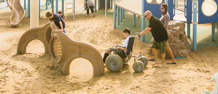 Sur le front de mer, le Boardwalk assure un accès aux personnes à divers degrés de mobilité afin d’explorer la promenade qui longe l’Océan Atlantique. Des rampes sont accessibles à chaque rue afin de permettre un accès direct à la plage de sable. Des chaises roulantes de plage sont disponibles gratuitement sur le principe du premier arrivé premier servi, aux 17e et 24e Rues. Situé sur le sable du Resort Beach, JT’s Grommet Island Park for EveryBODY est la première plage du pays à être entièrement consacrée aux enfants et adultes de toutes conditions physiques. Une aire de jeux idéalement aménagée est disponible sur place. En 2018, Virginia Beach accueillera le JT’s Camp Grom, un parc d’aventures et un ensemble de sentiers de 8 hectares pour les personnes à mobilité réduite, au sud du front de mer.