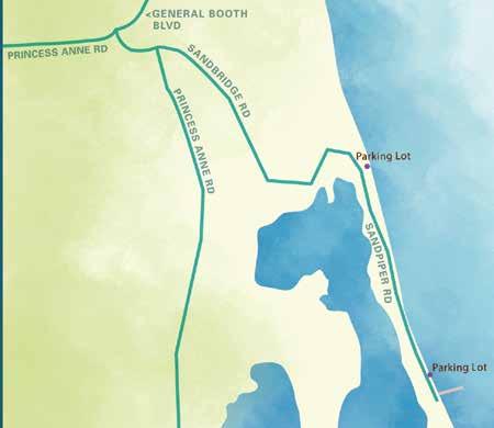Y ALLER : Depuis le complexe hôtelier balnéaire, dirigez-vous vers le sud sur Pacific Avenue pour rejoindre Booth Boulevard, puis prenez à gauche sur Princess Anne Road. Ensuite, continuez tout droit sur Sandbridge Road.