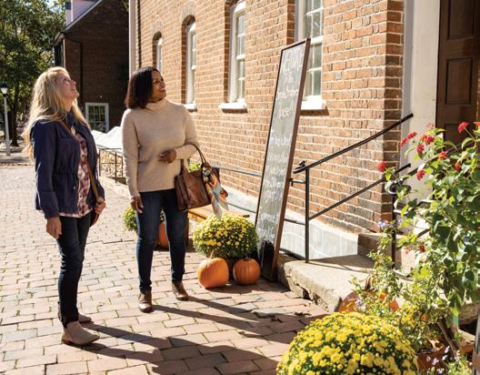 The farmbuildings of Reynolda Village once included a dairy barn, cattle shed, blacksmith shop and more; these historic buildings have been transformed into a village full of delightful dining and shopping experiences. Stroll through the picturesque village and explore chic boutiques, pampering and self-care options, home furnishings and décor shops, an independent bookstore and much more. Treat yourself at one of the five awardwinning dining options, featuring a variety of choices from dumplings to doughnuts, crepes to cocktails, and burgers to boba tea. With more than 20 unique shops, and a blend of history and modern-day amenities, Reynolda Village is a must-see destination for visitors.
