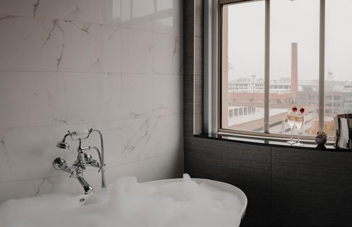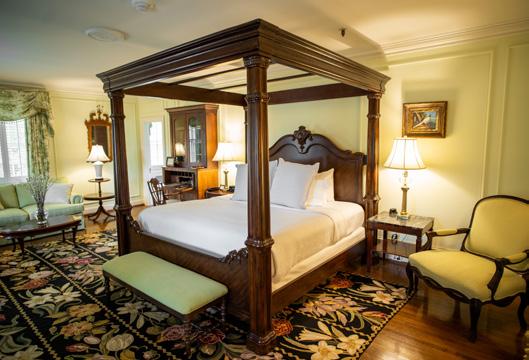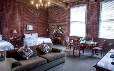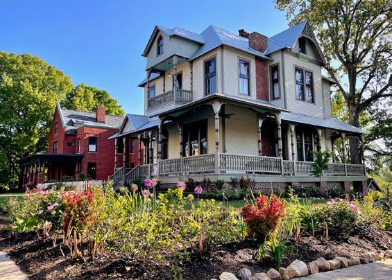 Three historic homes in downtown now operate collectively as Winston-Salem Historic Inns. The collection includes the Summit Street Inns: two side-byside properties, Ludlow House and Sheppard House, located in the West End. Together, they offer 10 guest rooms, each uniquely themed, where modern flair complements original fireplaces, stained-glass windows and a shared garden patio. A mile away, the 1907 Shaffner Inn, a Queen Anne Tudor-style home, offers eight distinctive guest rooms and event space for meetings and intimate gatherings.