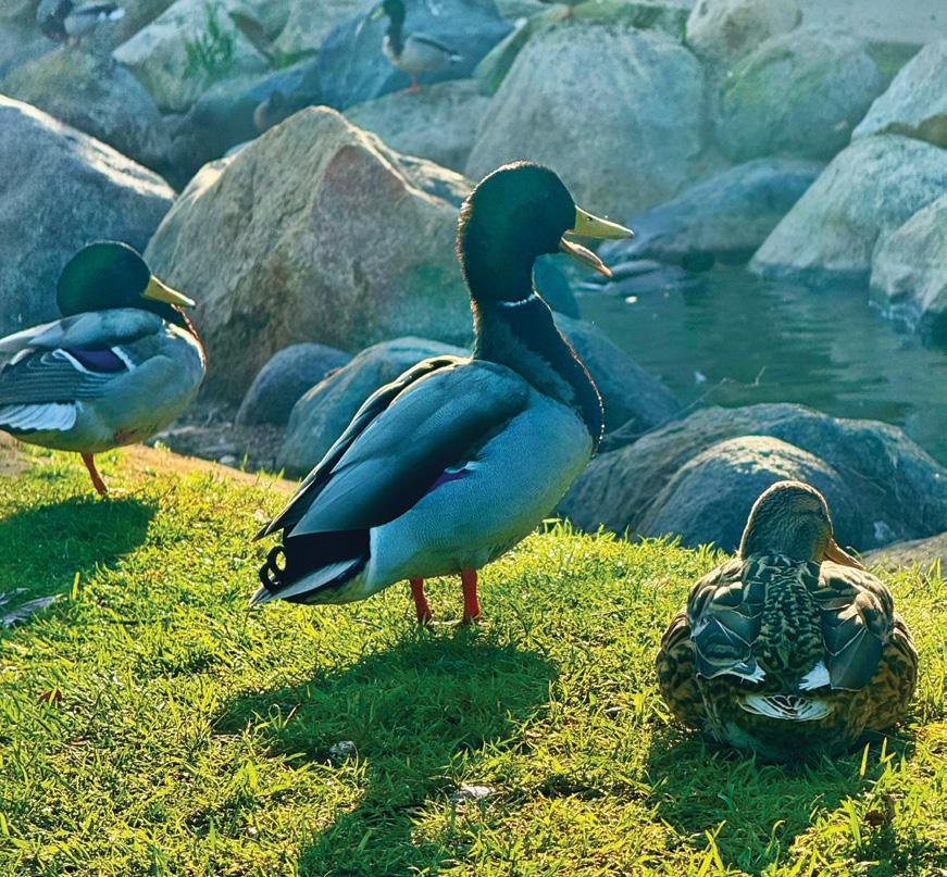 Recuadro: Patos felices disfrutando del sol en Vista's Creek Walk. Foto de Kent Leithold.