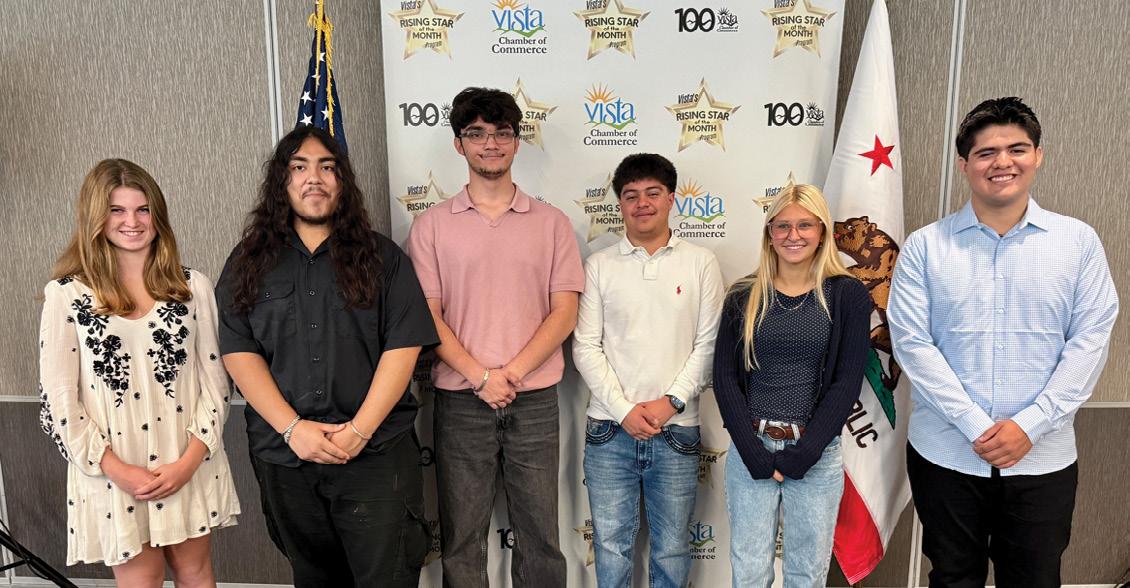 Ezra Baker – Guajome Park Academy; Iris Ramirez – Alta Vista High School; Ryan Pak – Mission Vista High School; Samantha Lopez Cordova – Rancho Buena Vista High School; Brooke Michael – Vista Visions Academy; Gael Estrada – Vista High School