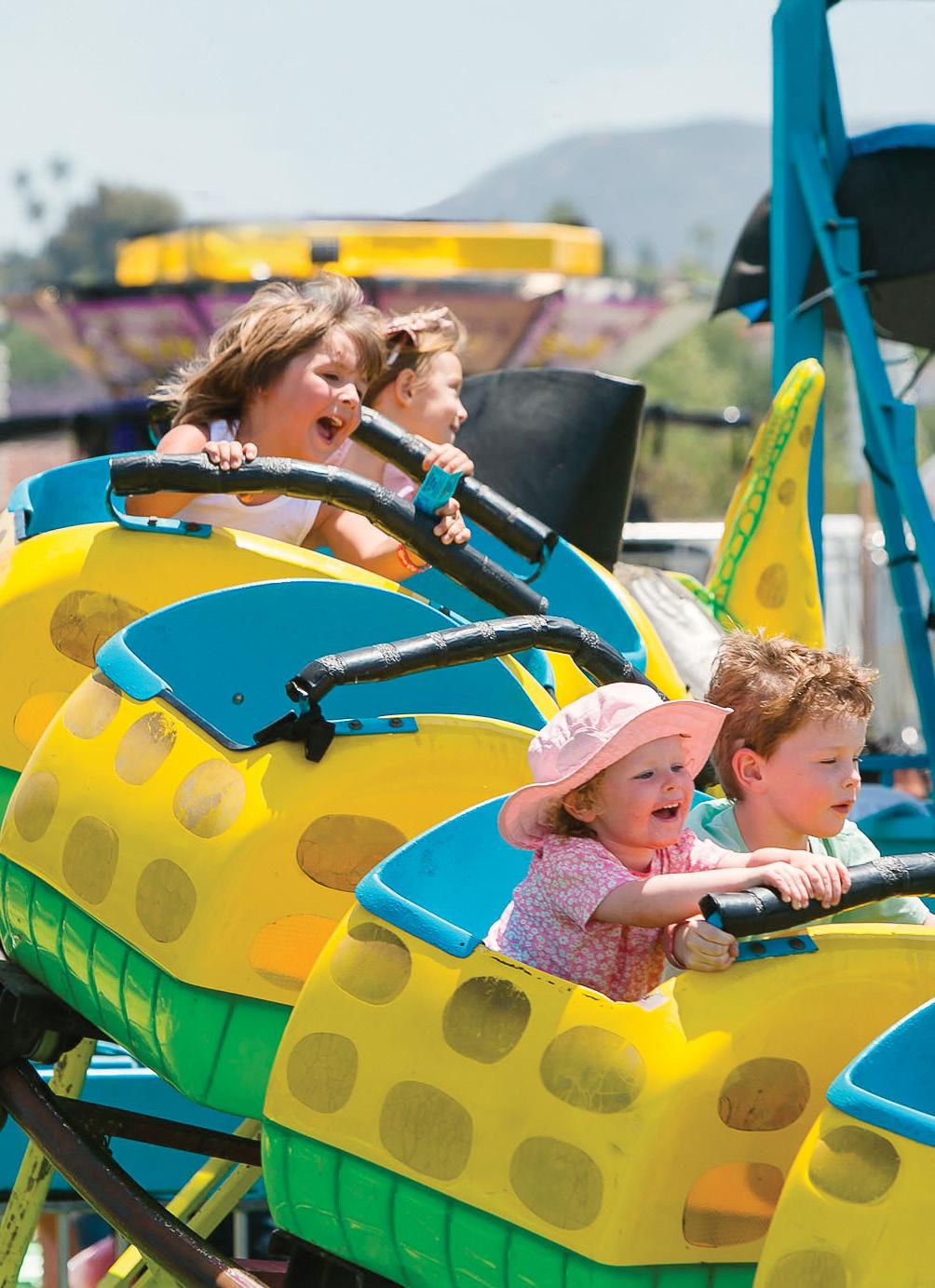 La Portada: Niños divirtiéndose en la montaña rusa del Festival de la Fresa 2025.