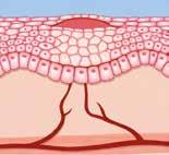 riguées. Le tissu est très sensible. La phase de granulation commence vers le deuxième jour et peut durer jusqu’à quatorze jours. Au cours de la phase d’épithélialisation, le tissu de granulation est transformé en tissu cicatriciel. Cela signifie que les cellules épithéliales migrent sur le tissu de granulation encore humide, se divisent et forment une couche cellulaire plus épaisse jusqu’à ce que la plaie soit refermée. Cette restructuration du tissu commence aux bords ou au fond de la plaie. La phase de régénération commence à partir du quatrième jour et peut durer jusqu’à trois semaines. Selon la taille et la localisation de la plaie, plusieurs semaines voire plusieurs mois peuvent être nécessaires pour que le tissu retrouve sa pleine élasticité.