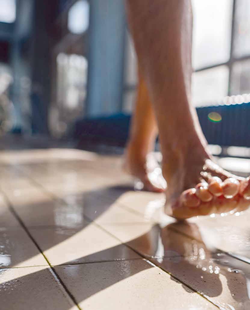 La mycose du pied est de loin la plus répandue. Pas étonnant: les dermatophytes apprécient les environnements chauds et humides. Les piscines, les douches et les vestiaires sont des lieux de contamination classiques. Les personnes infectées y laissent des squames. «Il y a beaucoup de dermatophytes dans les pédiluves», explique Maya Wolfensperger. «Car les personnes déjà infectées les utilisent aussi.» La mycose du pied se caractérise par des zones de peau squameuses, ramollies ou fissurées, généralement entre les orteils et cela s’accompagne de démangeaisons ou de brûlures. La mycose des ongles est différente. Il n’y a pas de desquamation, mais une modification de la structure de l’ongle: il s’épaissit, prend une teinte jaunâtre à brune, devient cassant ou se décolle partiellement du lit de l’ongle. Les ongles poussent lentement et le germe est souvent profondément ancré. Si la matrice de l’ongle est touchée, les mesures externes ne suffisent souvent pas et le traitement peut durer des mois.
