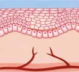 bei die Epidermis und die Dermis zusammen die Cutis bilden (siehe Grafik auf Seite 28). Die Epidermis ist dabei die äusserste Grenzschicht zwischen Organismus und Umgebung und besteht aus mehrschichtigem Plattenepithel, das nach aussen hin immer mehr verhornt ist. Die Epidermis ist nicht durchblutet. Die Dermis ist dicker als die Epidermis und besteht aus Bindegewebe, in das Blutgefässe, Nervenbahnen, Lymphgefässe, Haare, Talg- und Schweissdrüsen eingelagert sind. Die Subcutis besteht aus lockerem Bindegewebe mit eingelagerten Fettzellen. Die Dicke ist je nach Körperstelle unterschiedlich und abhängig