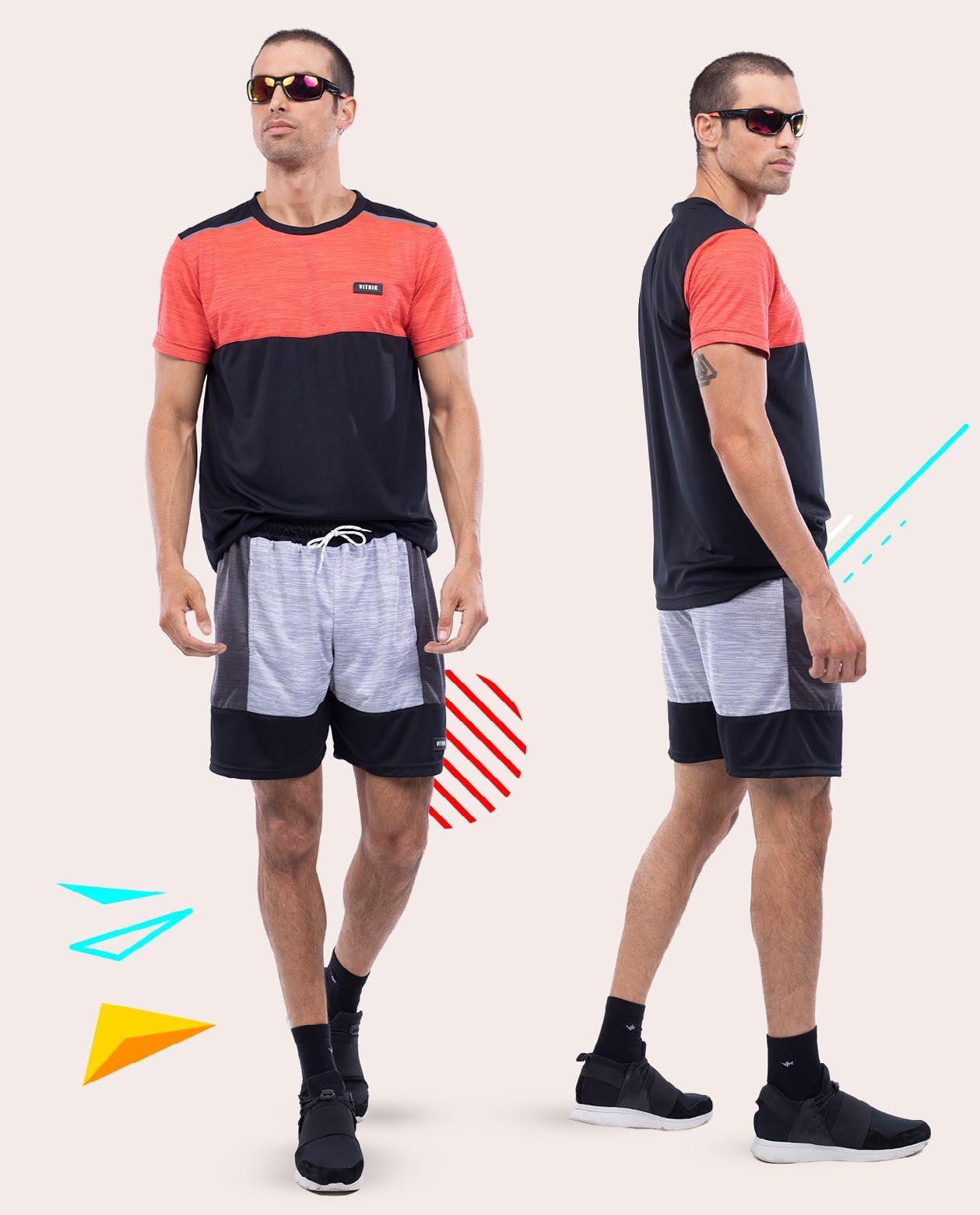 31LOVE DESTINATION | Remera T.DRY combinada con recortes en power soft microperforado jaspeado y detalles en naranja flúo $579990 12-0865-02 S/M/L/XL