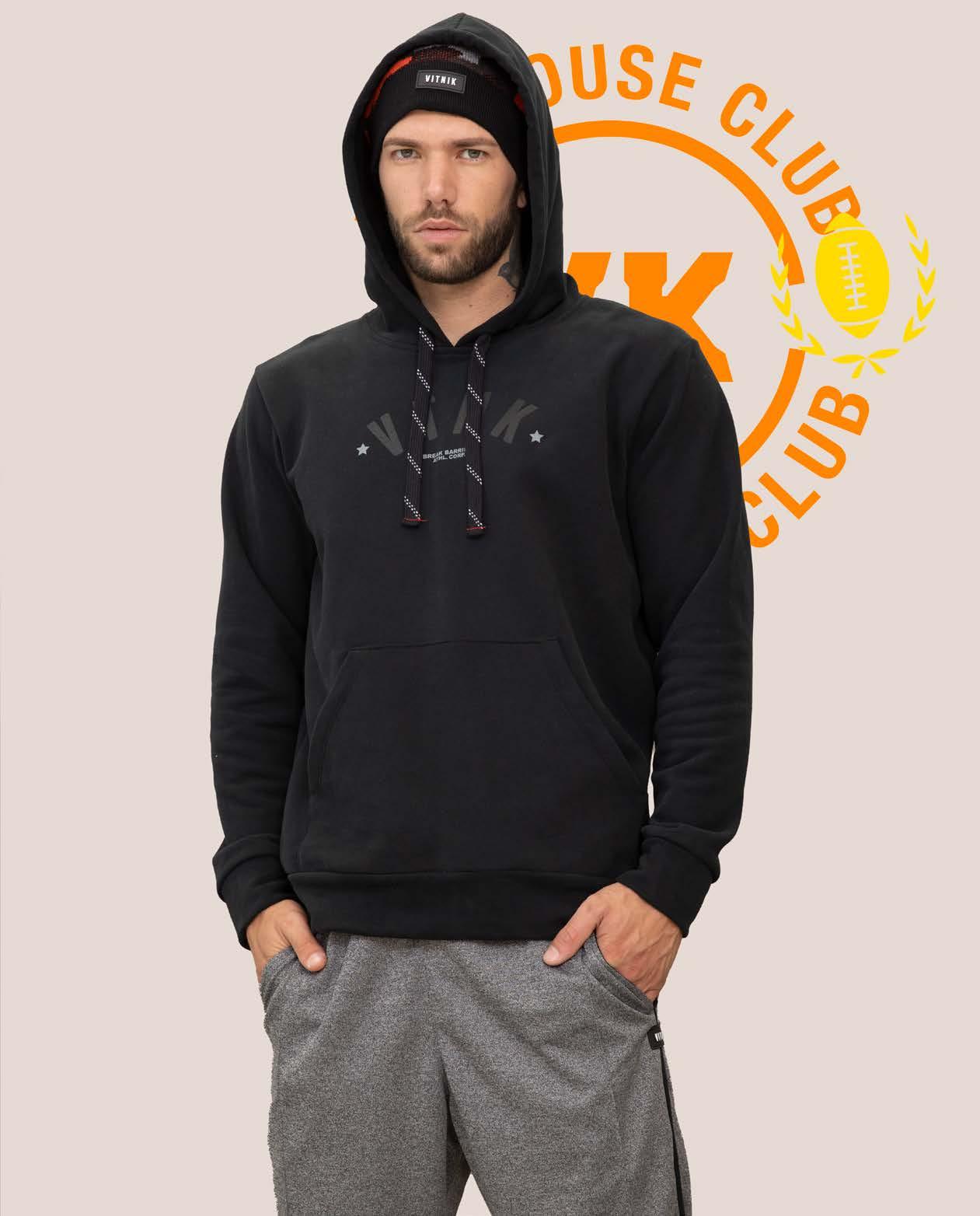Buzo polar thermo fleece con capucha y bolsillo canguro combinados en microfibra al tono. Lleva estampa en delantero $2299990 $2199990