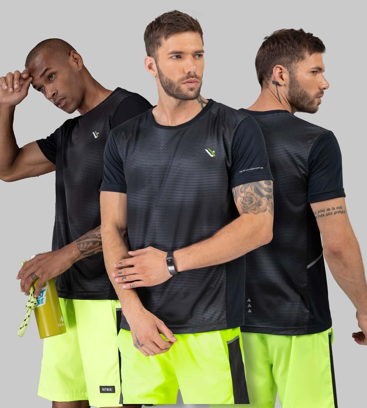Remera T.DRY con laterales combinados en mesh con spandex y terminaciones en reflex laser-tech Short deportivo microfibra ultrasoft elastano con vinilo calado en lateral y detalle reflex laser-techCiclista supplex cintura en elástico con logo a contratono y detalles reflex