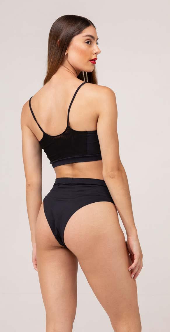 Top deportivo microfibra línea comfy con detalles de microtul al tono en espalda