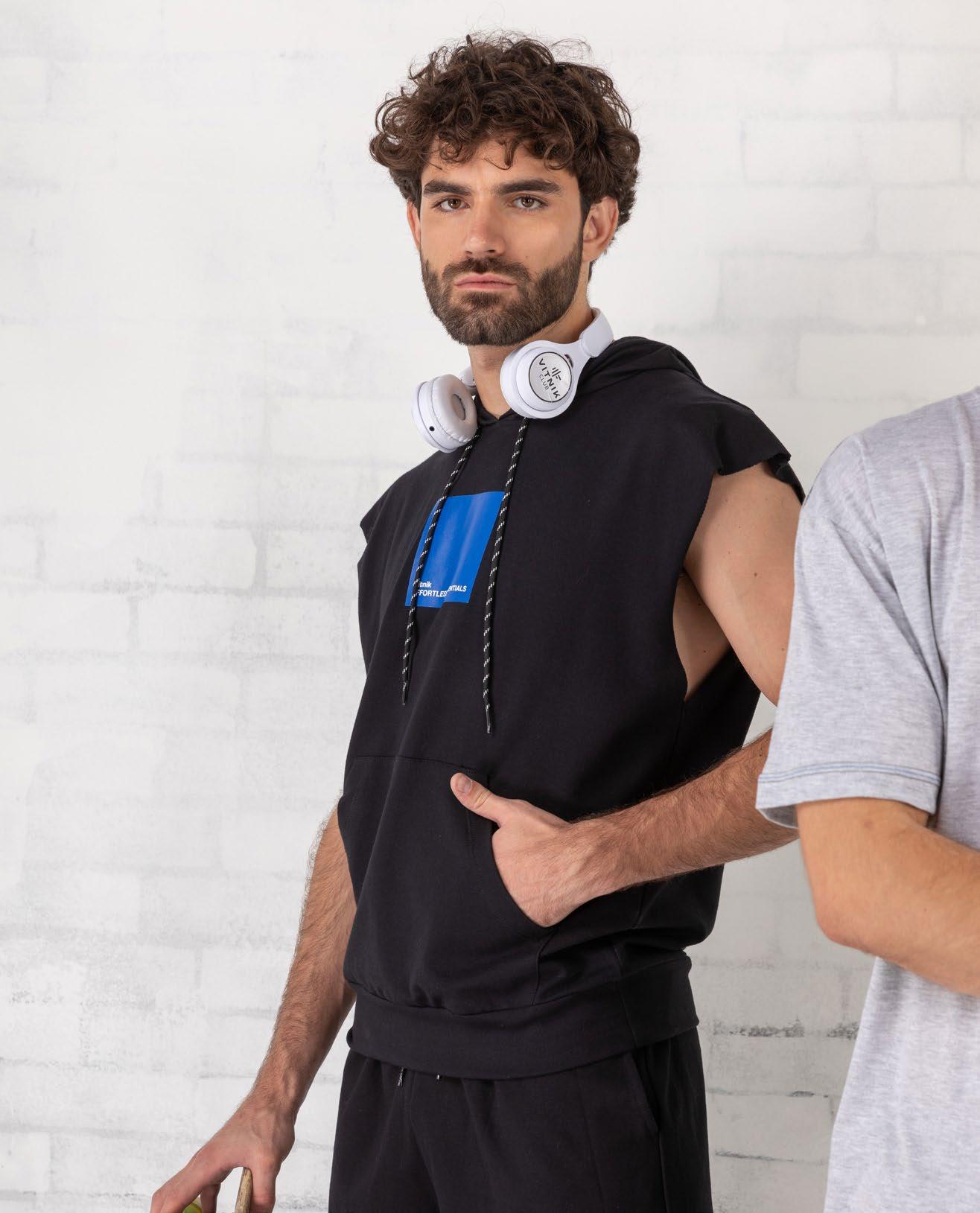 Sudadera UNISEX rústico liviano con capucha, sisas al corte y estampa 81-8009-02