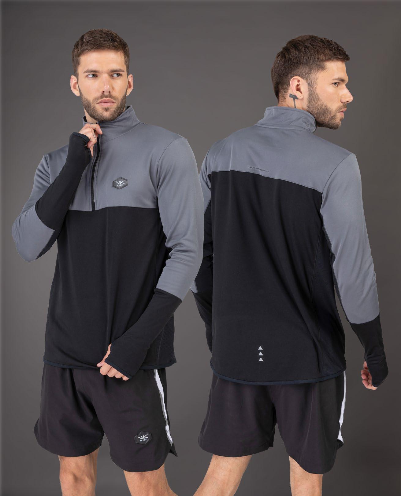 Polera T.DRY warm combinada con reflex en cierre y puños runner
