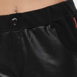 Short largo engomado con pinzas en delantero 8Q-4002-02 S/M/L Pantalón slouchy algodón rústico corte jean con detalle de boquilla lateral en engomado negro 05-3061-82
