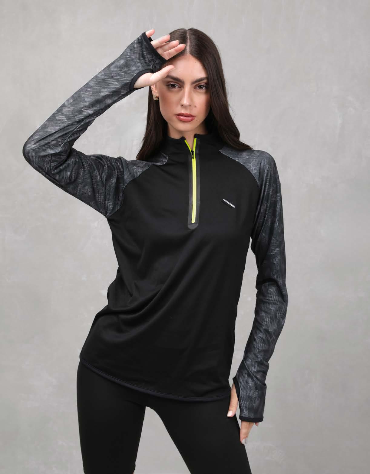 Polera T.DRY warm con mangas sublimadas y cierre laser-tech limón 0S-1002-02