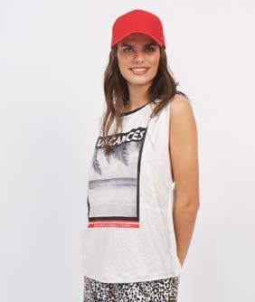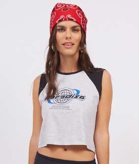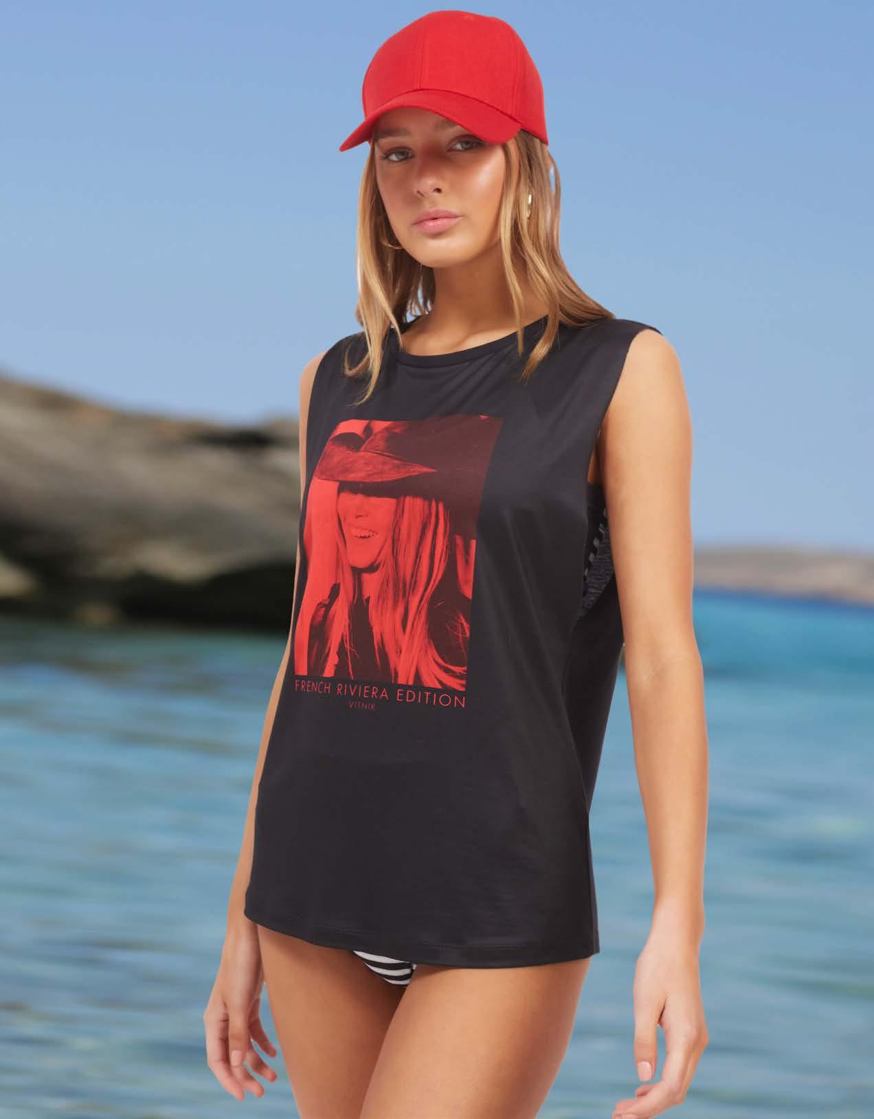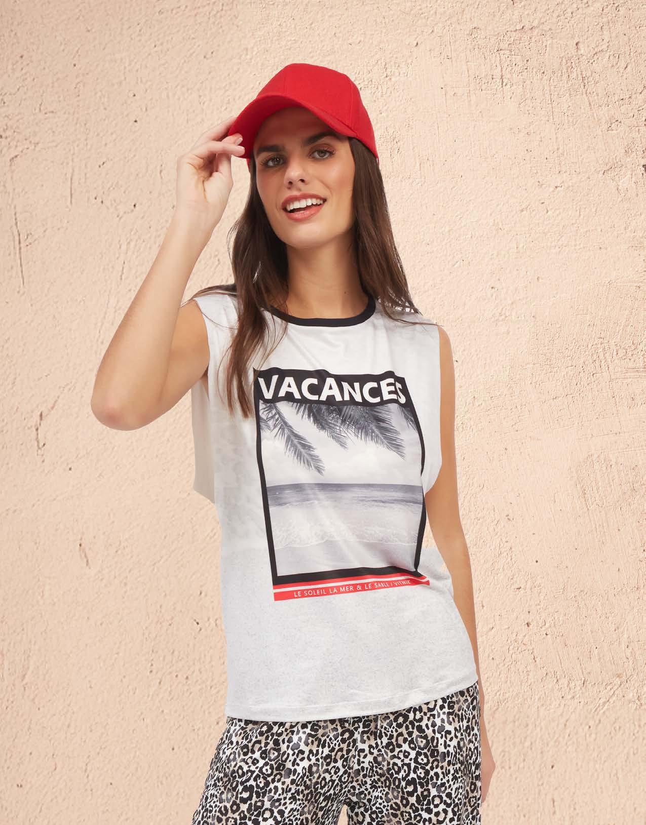 Remera cropped sin mangas jersey fine con estampa en delantero