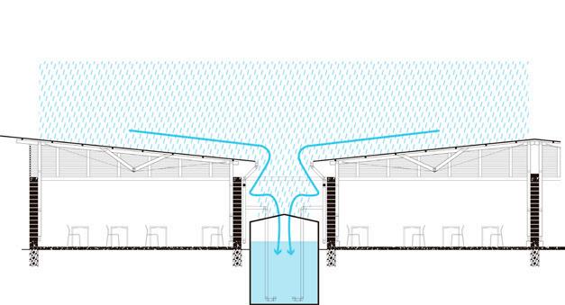 By studying di erent grids, a guiding module was established to determine the layout of the roof, frames, structure, and overall arrangement of the building. The project encompasses a wide scope, featuring a main hall integrated with an atrium, a rear intimate area housing services, toilets, a kitchen, and a living room/library.