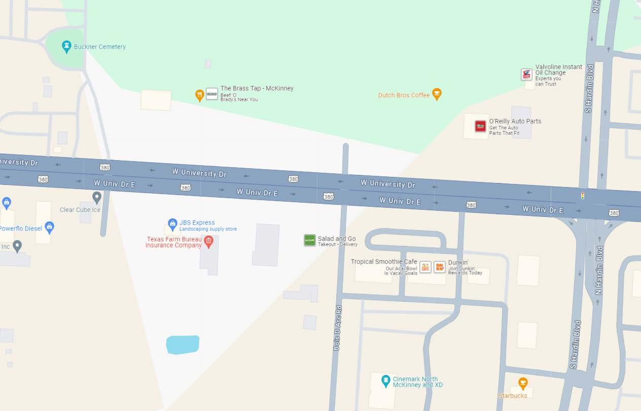 • Excellent Positioning Fronting Highway 380 – Most Trafficked East/West Thoroughfare in North DFW | Visible to Over 50,000 Vehicles per Day