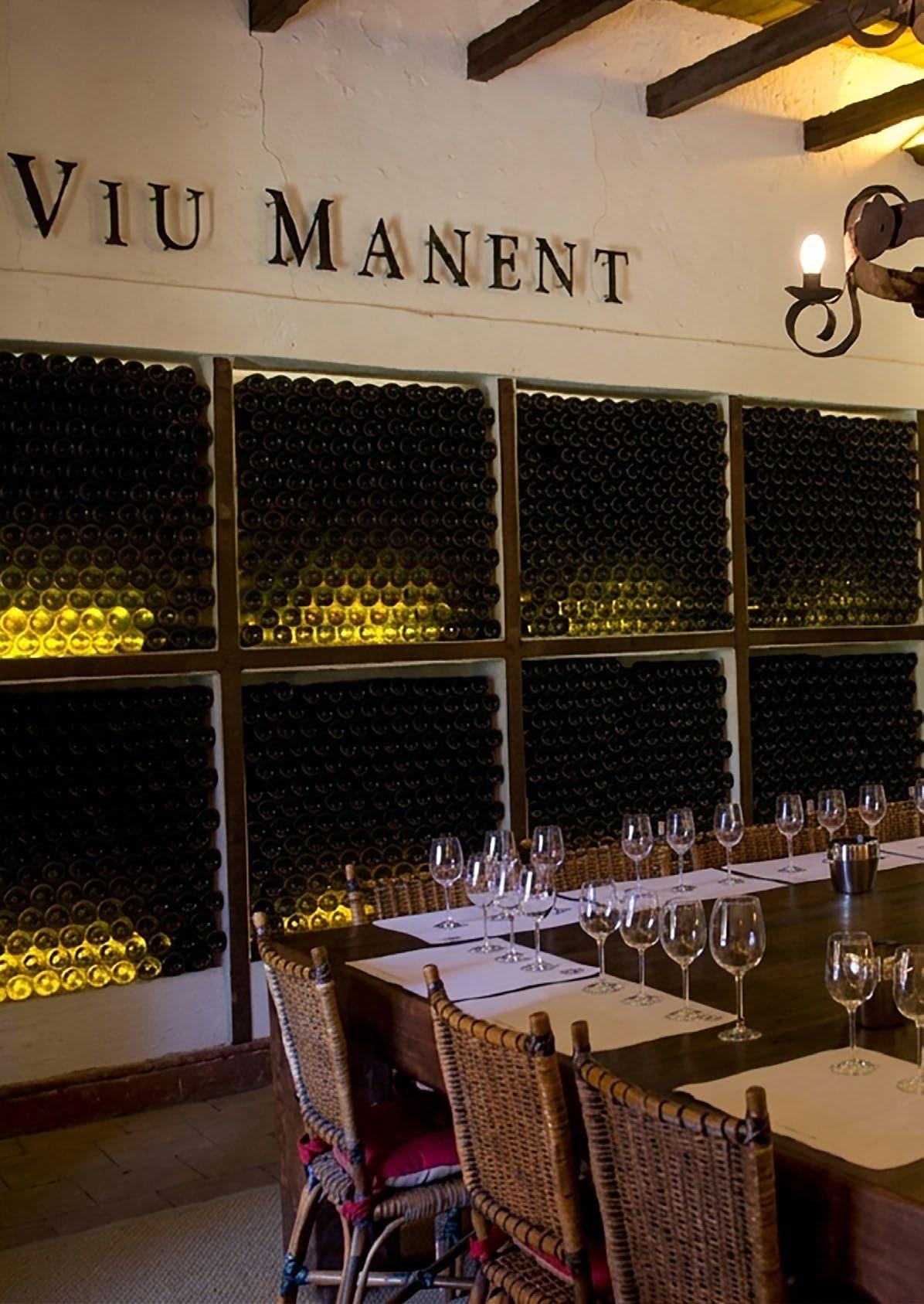 Sala que en sus muros cuenta la historia de la viña familiar Viu Manent.