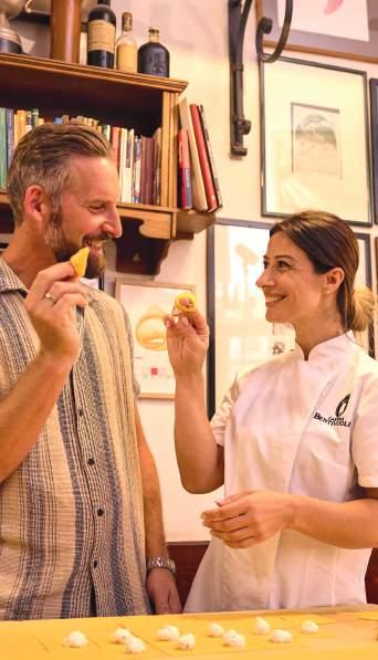 In the heart of Emilia-Romagna, you‘ll discover Bologna, known for its academic heritage, medieval architecture and culinary diversity. Under the famous arcades, your walk with your guide will take you past elegant palaces, sunny squares and the striking Due Torri. In the Quadrilatero market district, you‘ll experience the entire spectrum of Italian culinary culture — from fresh pasta to delicatessen and traditional baked goods. But the culinary highlight is yet to come. Afterwards, a local pasta maker, called sfoglina, will demonstrate the art of hand-made egg pasta before you enjoy a lunch of freshly prepared pasta and the famous Ragù alla Bolognese —accompanied by regional wine, delicious dessert, and real Italian coffee.