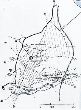 Hand sketches showing the phases of master plan development using the twin-track principle