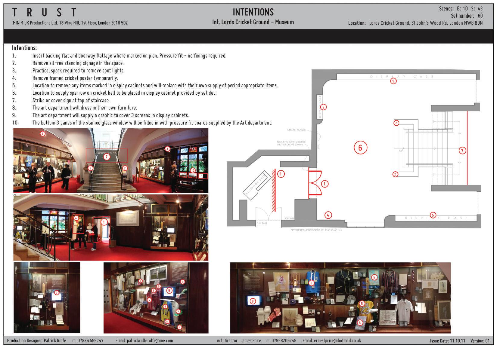 Key skills/outcomes: Location survey, CAD draughting, model making, set dressing, graphic design, stand-by art directing, art department organisation, time and budget management