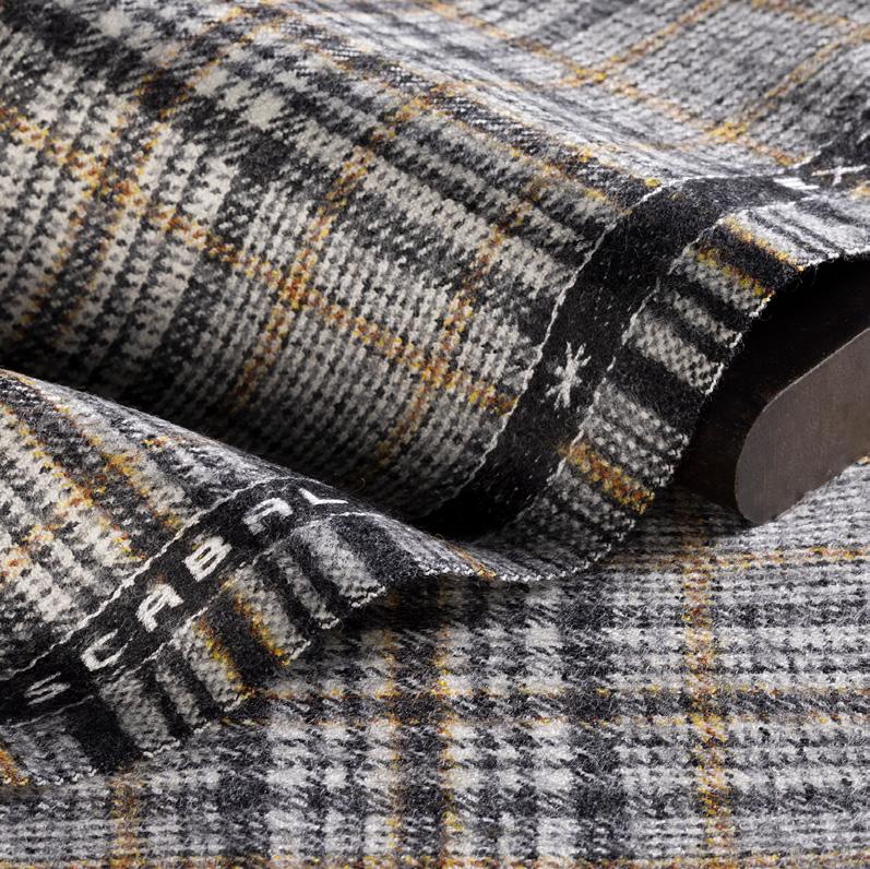 the collection opens with a selection of dramatic checks in reds and blues, then moves to window pane and fancy designs in greys, beige and brown. the cashmere selection closes as it started with the bold statement colours of teal, purple, green and red all present. the 100% wool articles have a more muted feel to their patterns, soft pastel colour combinations of light grey, fawn and browns are followed by the stronger colours of mustard, reds and purples.