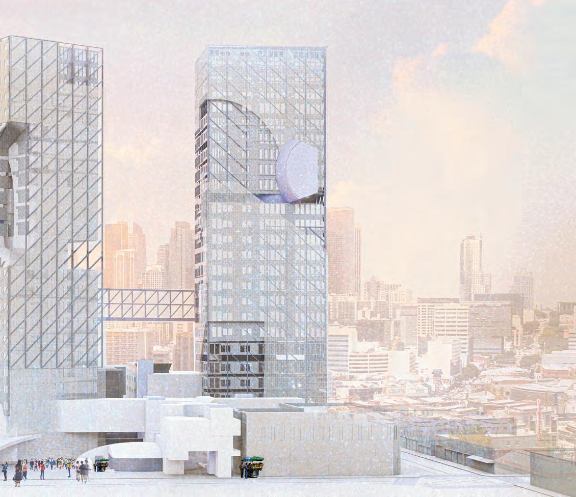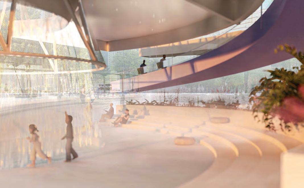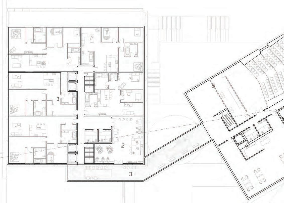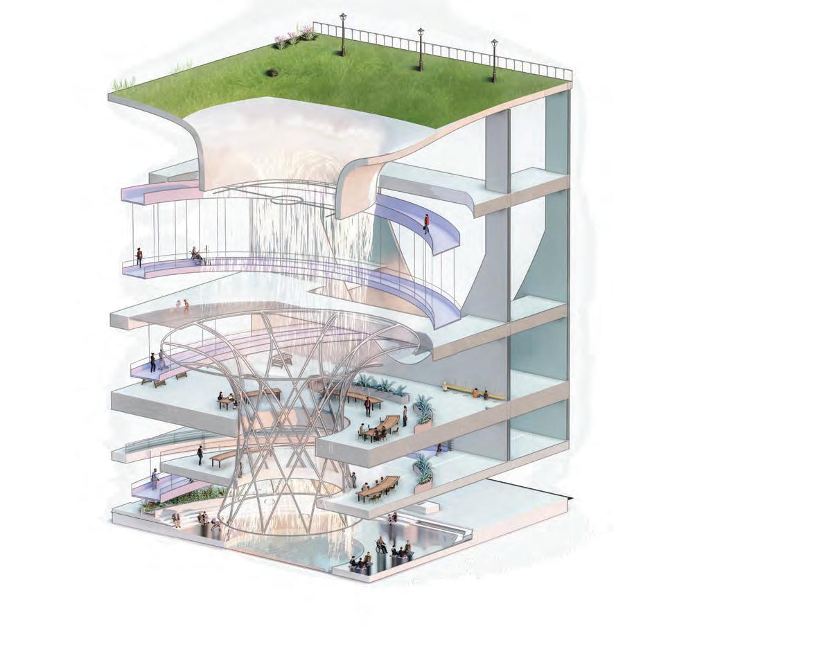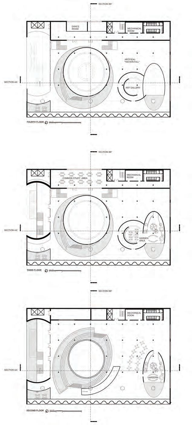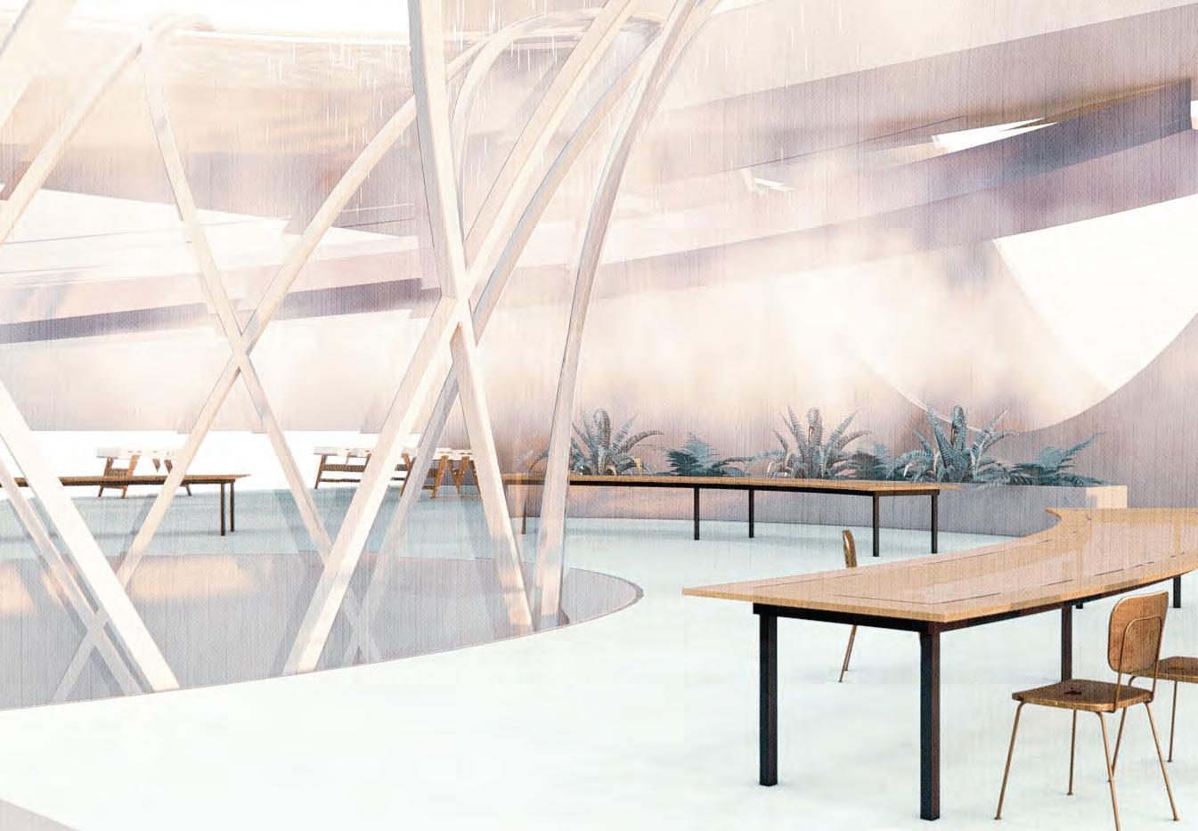 The ellipsoid geometry are community space that interweaving into the residential area of the mixused building. This approach enables individuals to enjoy a blend of mundane sounds and speculative conversations, fostering a sense of community and social interaction within the building.