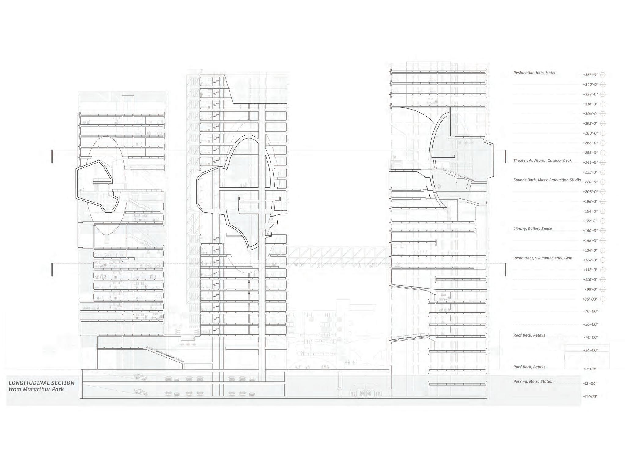 “Round Sound” is a rethinking urban and mix-used housing with integrated formal design. It is an experiment of carving and nesting to introduce gaps that bring light and ventilation into high rise building. Carved out area would serve as outdoor spaces for the pubic. Creating cavity along the building allows light to be introduces into the interior spaces through different direction.Therefore, it is important to have a place in LA where people can regenerate their lifestyle and routines.