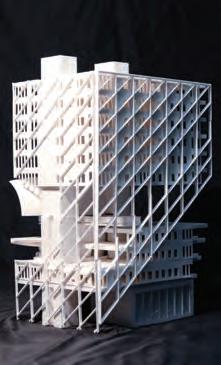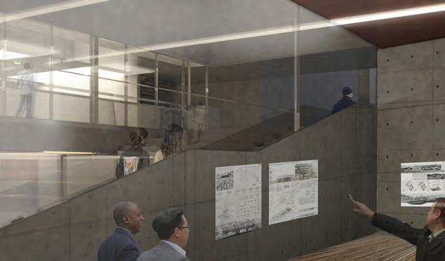 Review is a public and private activity. As a result, the transparent wall and stair case invite people from the outside to interact and participate the review indirectly.