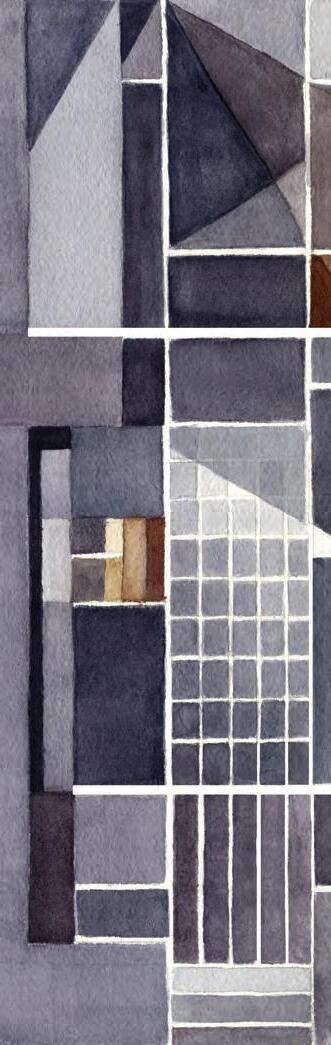 Using 2 points perspective to illustrate an abstract and futuristic architecture on top of an existing building Pen and Watercolor on Paper. 18”x24”
