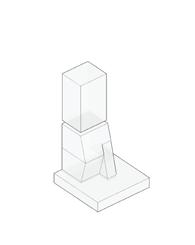 A combination of regulating lines, section, elevation views. Using the color purple to illustrate the shady area, and Siena brown for highly lighted area.