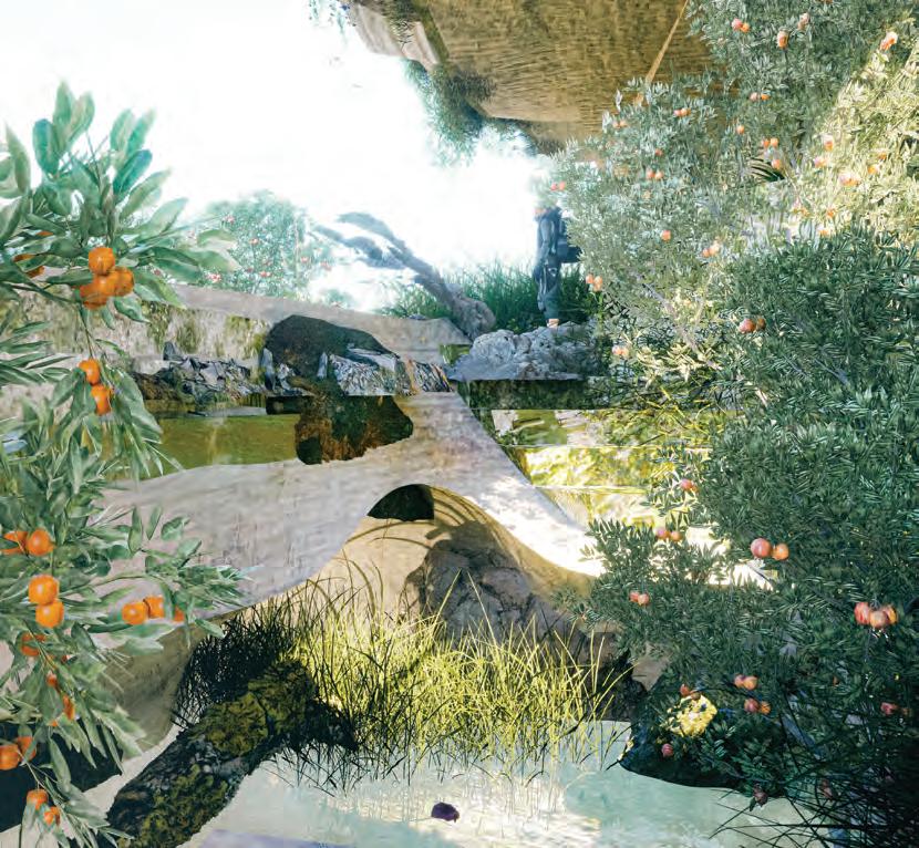 By working in harmony with the natural forces around it, this space has the potential to be a sustainable and restorative oasis in an urban environment.
