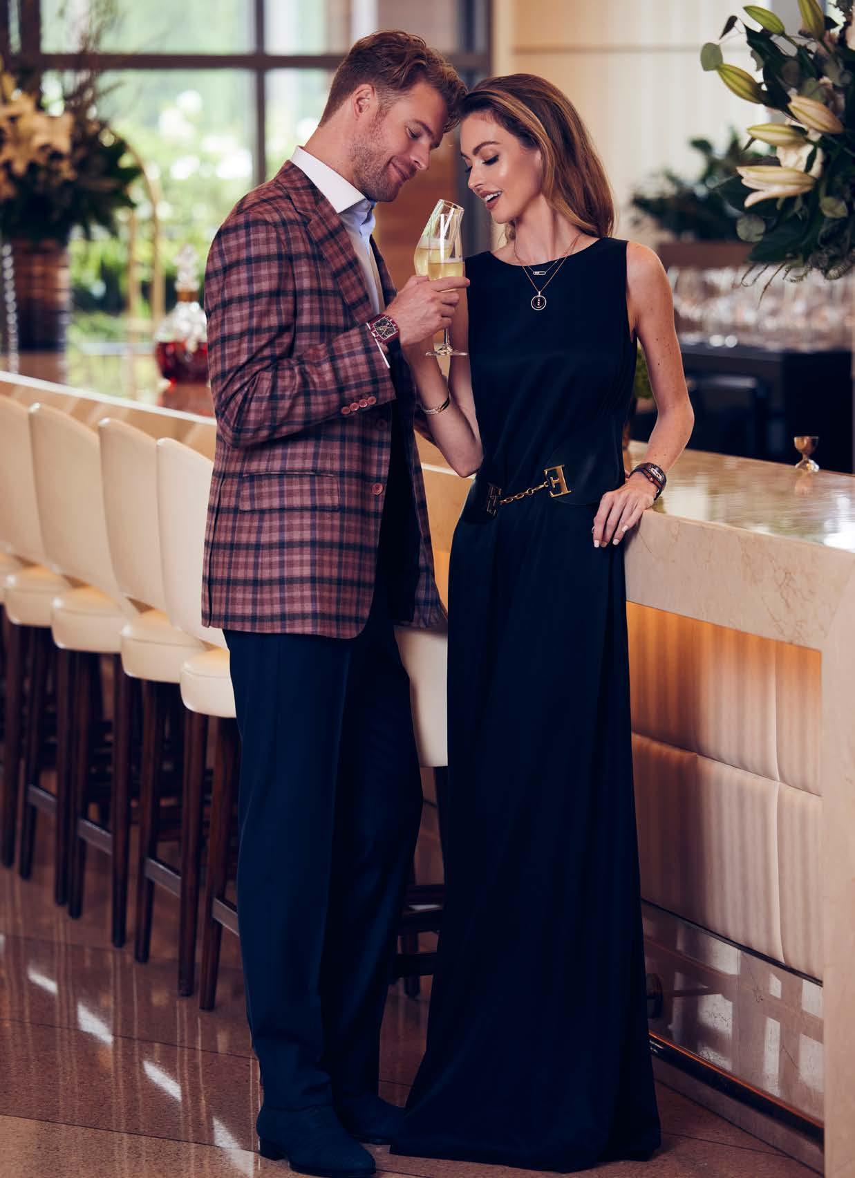 Her Earrings, Ring and Necklace by Shay Jewelry Blazer, Cami and Pants by Escada His Bomber, Sweater, Belt and Jeans by Stefano Ricci