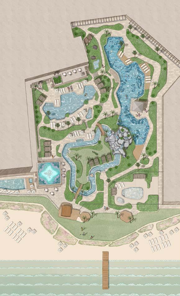 Embark on an international journey of delectable flavors and time-honored culinary traditions. Choose from four distinctive dining experiences, featuring globally inspired cuisine ranging from coastal Italian classics to succulent steaks, Latin American flavors to Nikkei Cuisine. Immerse yourself in the healing power of water at our worldclass St. Regis Spa experience designed to pamper, indulge, and revitalize. From the moment you enter the spa’s Arrival Area, with its Celebration Bar serving champagne and wellness shots, you begin your journey of relaxation and restoration. Dotted with soaring palms and lush planting, the leafy central courtyard, known as “The Pools,” features an array of swimming pools, luxury loungers, and personal cabanas, offering tranquility and privacy. This exquisitely landscaped haven is also home to our Winding River, perfect for a leisurely float, and an extraordinary Saltwater Lagoon experience, which allows guests to swim with schools of tropical fish and interact with our resident Aldabra giant tortoises. Just a few steps away lies the resort’s private beach, where you will enjoy attentive service as you marvel at views of the Gulf of Mexico.