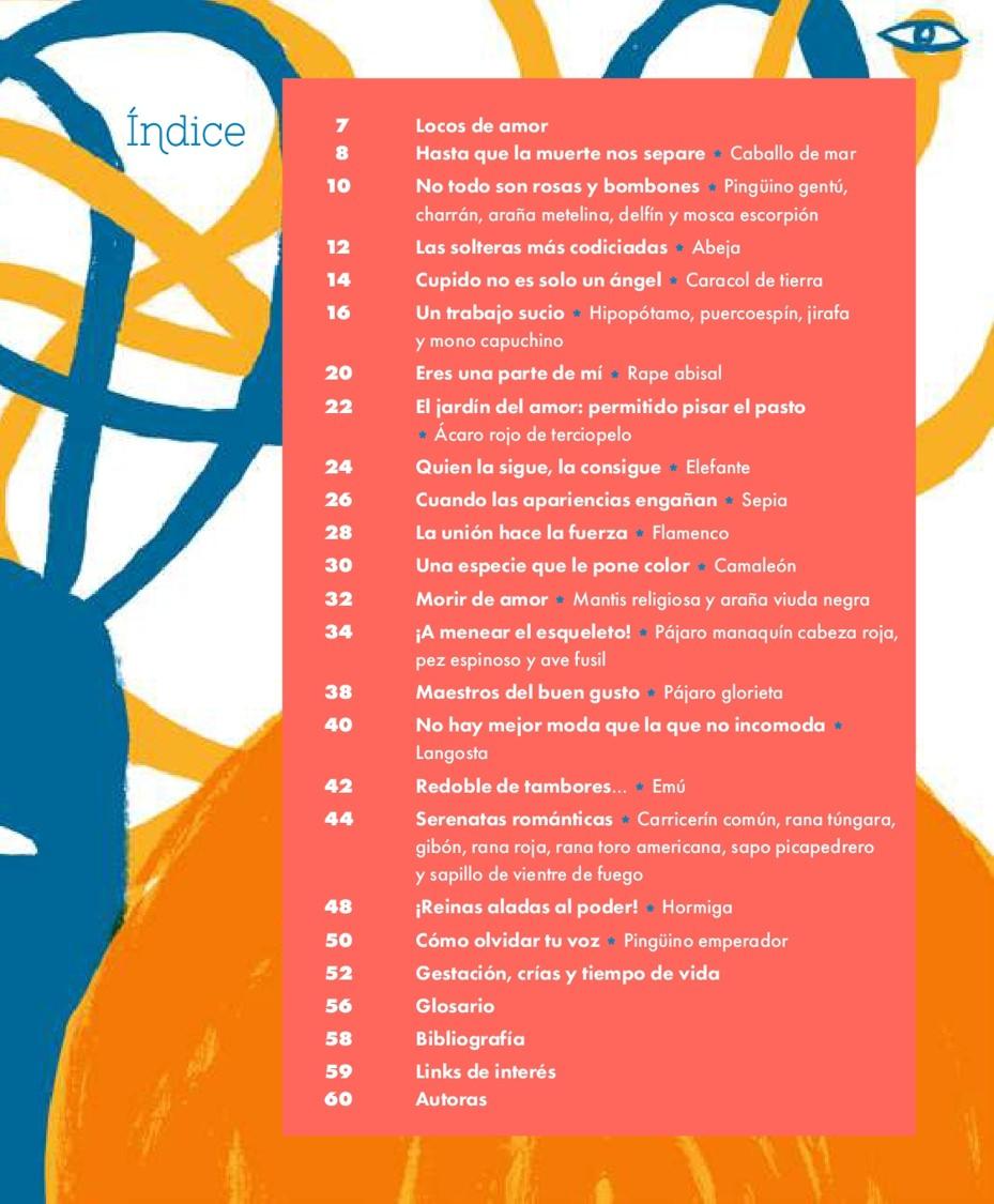 ¿Todo es posible en el amor? Un colorido libro sobre el comportamiento animal con entradas sobre varias especies y sus particulares formas de cortejo.