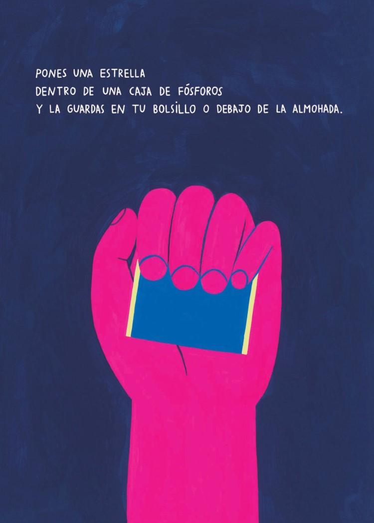 Es la historia de un antiguo pacto de amistad entre los niños y el cielo: capturar estrellas en una caja de fósforos para hacer desaparecer todos los miedos con su luz. Una imaginativo y sencillo relato poético para abordar los temores infantiles.