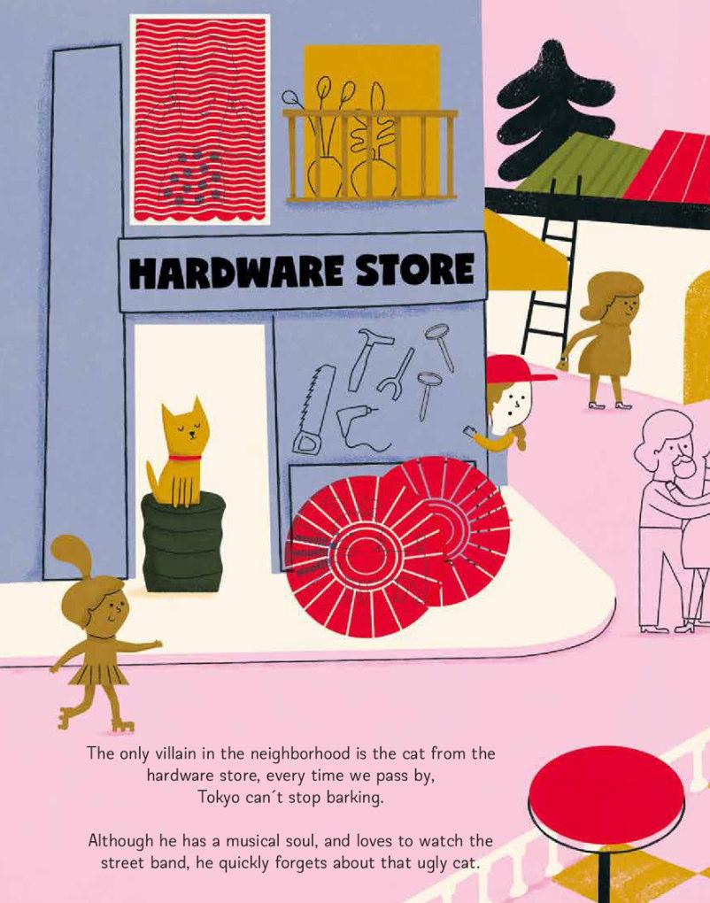 Tokyo loves to sniff, dig in the dirt, and make friends in every corner of the city. One day, walking in the park, he began to run so fast that his owner could not catch up with him. With the help of a special magnifying glass with a red lens, we can discover all the favourite corners of Tokyo, as well as characters and funny situations hidden in the illustrations.